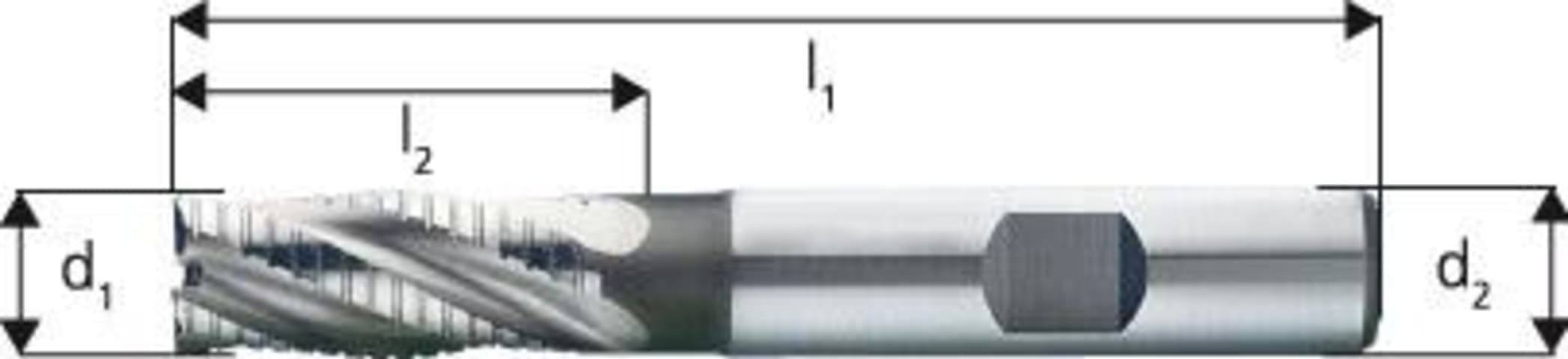 Schruppschlichtfräser, blank• Ausführung: kurz • HSS-Co5 • Typ NF • 4 Schneiden • DIN 844-K • DIN 1835-B • Schruppschlichtverzahnt • Drallwinkel 30° • Zum Umfangs- und Bohrfräsen • Mit Zen