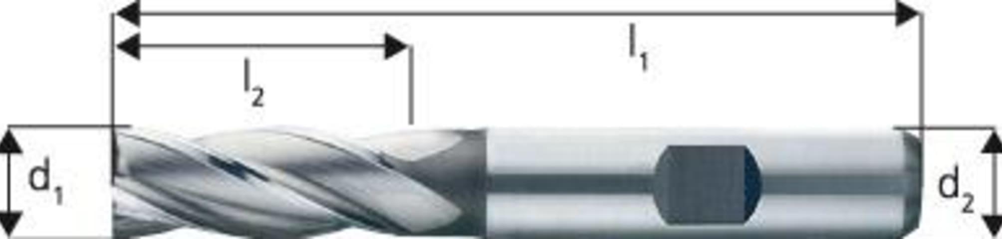 Schaftfräser, TiAlN-beschichtet• Ausführung: kurz • HSS-Co8 • Typ N • 4 Schneiden • DIN 844-K • DIN 1835-B • Drallwinkel 30° • Zum Umfangs- und Stirnfräsen • Mit Zentrumschnitt • Scharfka