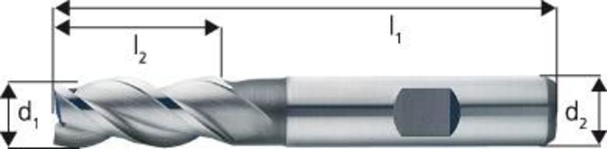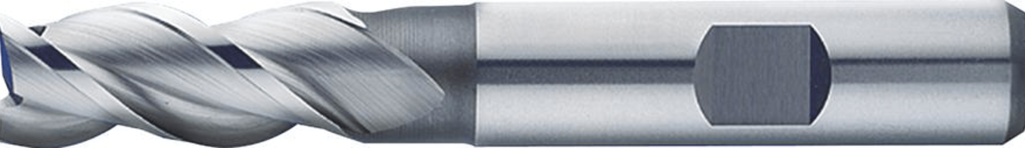 Schaftfräser für Aluminium, blank• Ausführung: kurz • HSS-Co8 • Typ W • 3 Schneiden • DIN 844-K • DIN 1835-B • Drallwinkel 40° • Zum Umfangs- und Bohrfräsen • Mit Zentrumschnitt und Schutzfas