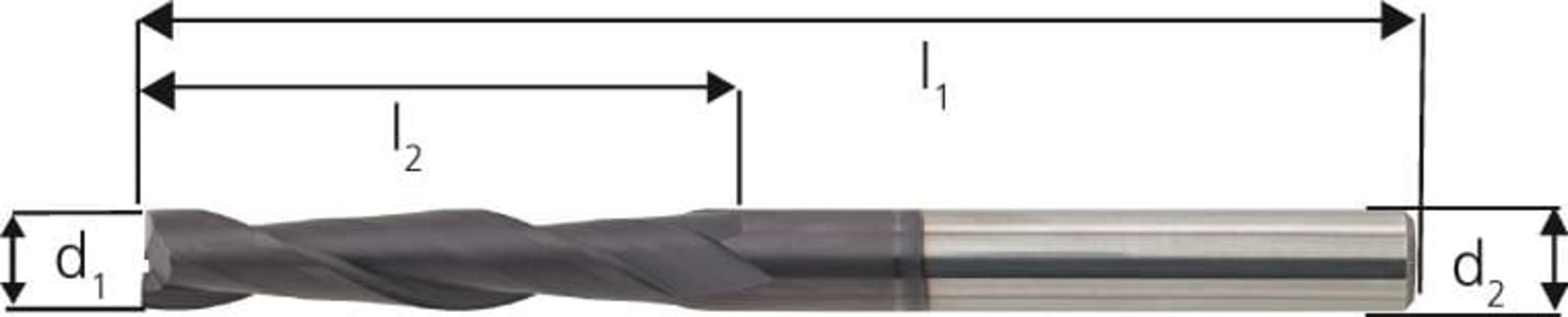 VHM-Schaftfräser, TiAlN• Ausführung: extralang • VHM K10/K20 • Typ N • 2 Schneiden • Werksnorm • DIN 6535-HA • Drallwinkel 30° • Zum Fräsen von Keil- und Passfedernuten, für die universelle Bea