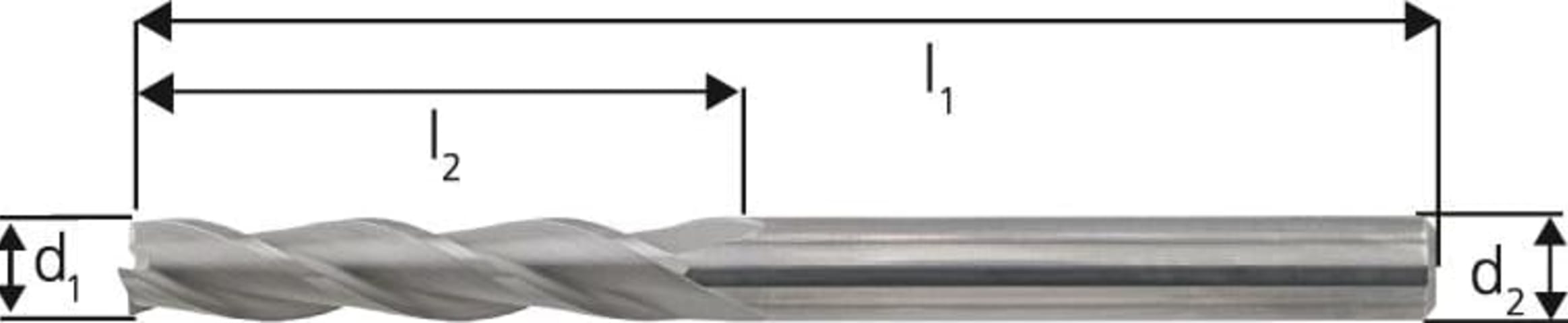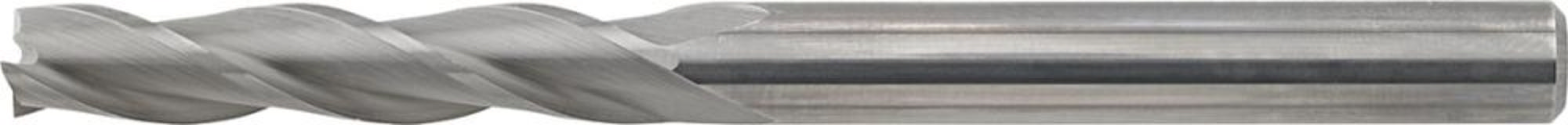VHM-Schaftfräser, blank• Ausführung: extralang • VHM K10/K20 • Typ N • 3 Schneiden • Werksnorm • DIN 6535-HA • Drallwinkel 30° • Zum Fräsen von Nuten • Frästiefe max. 3 x D • Mit Zentrums
