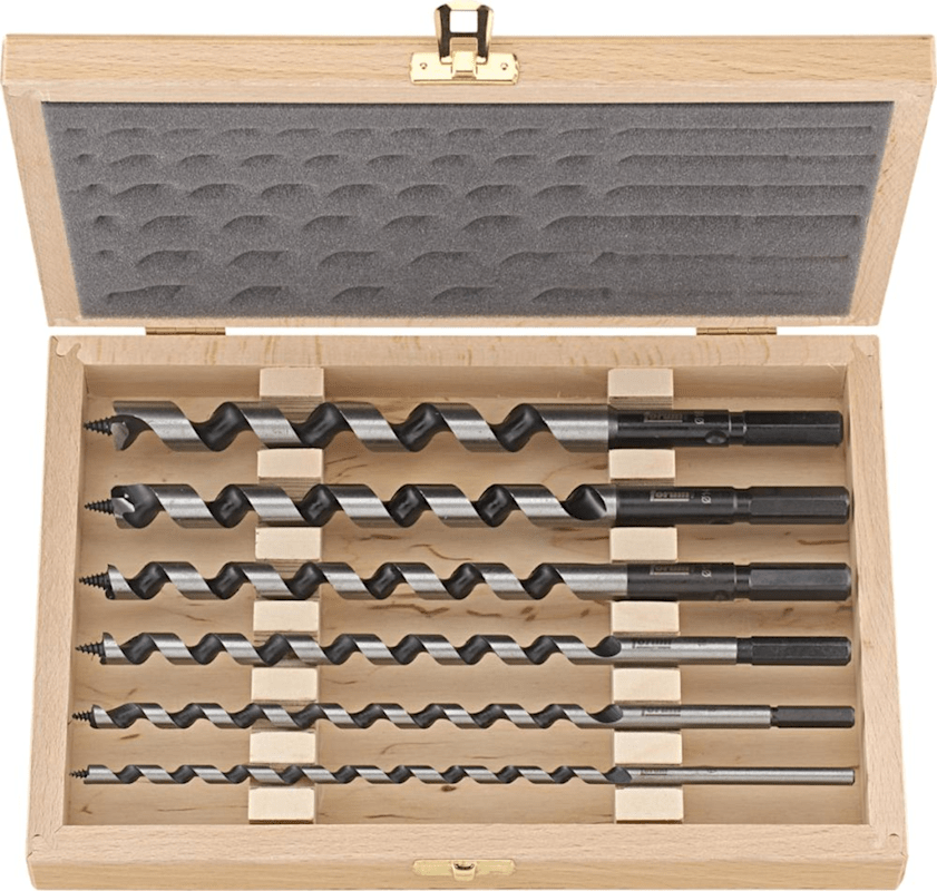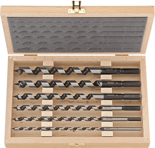 Schlangenbohrer-Satz LEWIS• Werkzeugstahl • Gewindespitze • 1 Vorschneider • Zum Durchbohren von Balken und Sparren • Für Weich- und europäisches Hartholz Lieferung: Im Holzkasten.