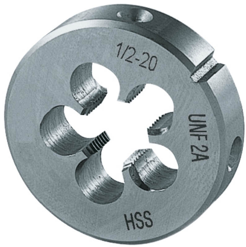 Schneideisen, blank• UNF-Feingewinde ANSI B1.1 • HSS • Toleranz 2A • Geschlossene, vorgeschlitzte Form • Anschnitt über 1,75 Gänge • Lehrenhaltige Außengewinde • Schälanschnitt auf beiden Seiten