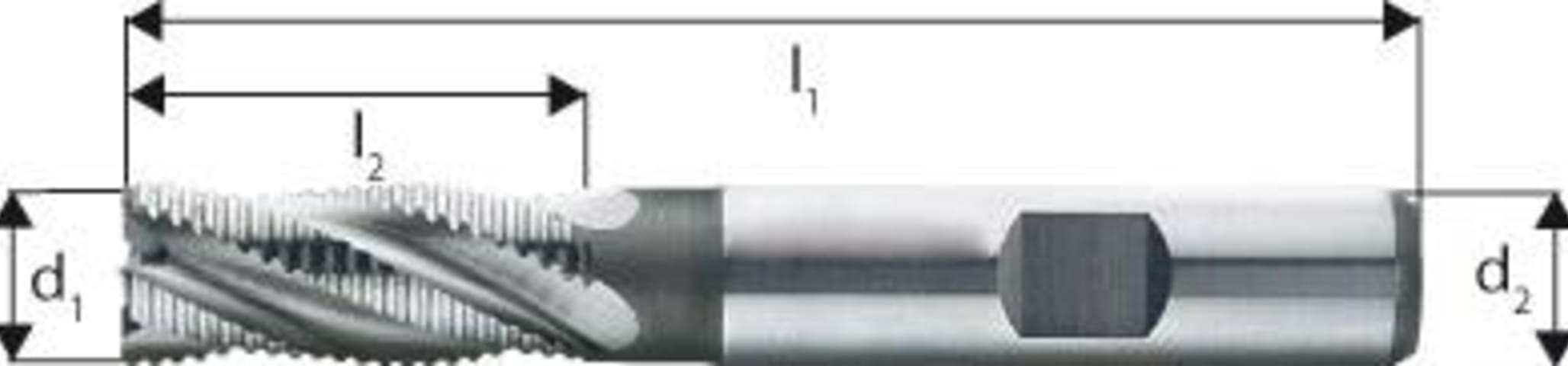 Schruppfräser, blank• Ausführung: kurz • HSS-Co10 • Typ HR • 3–4 Schneiden • DIN 844-K • DIN 1835-B • Drallwinkel 30° • Zum Umfangs- und Bohrfräsen • Mit Zentrumschnitt • Spanwinkel 13°