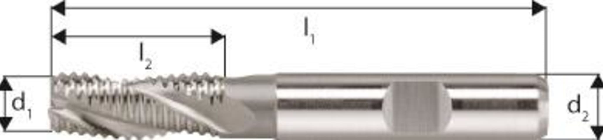 Schruppfräser, blank• Ausführung: kurz • HSS-Co8 • Typ NR • 3 Schneiden • DIN 844-K • DIN 1835-B • Schruppverzahnt • Drallwinkel 30° • Zum Umfangs- und Bohrfräsen • Stirn-, seitliches und
