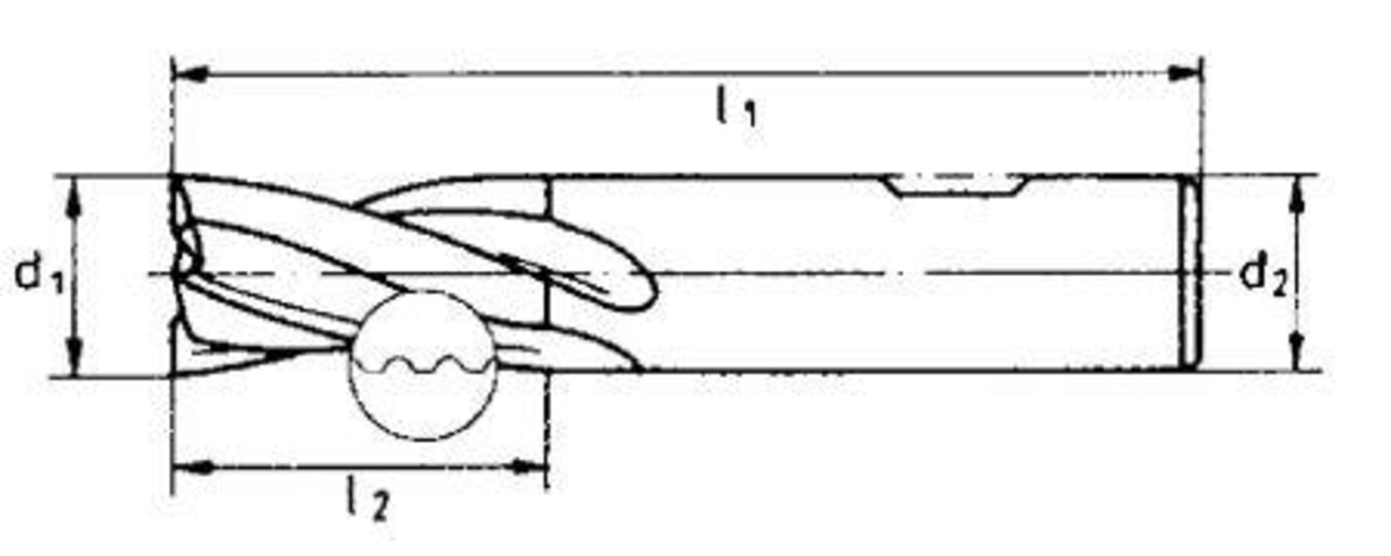 Schruppfräser, blank• Ausführung: kurz • HSS-Co8 • Typ NR • 4 Schneiden • DIN 844-K • DIN 1835-B • Schruppverzahnt • Drallwinkel 30° • Zum Umfangs- und Bohrfräsen • Stirn-, seitliches und