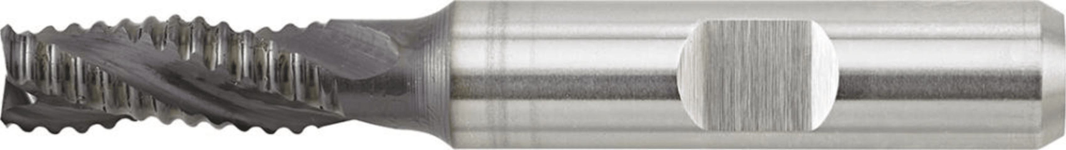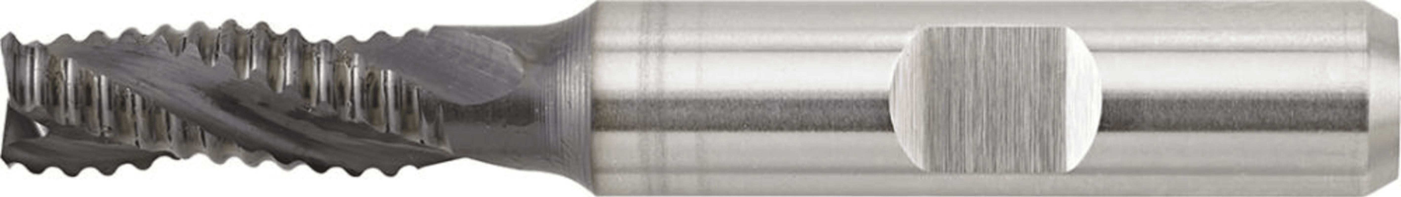 Schruppfräser, TiAlN-beschichtet• Ausführung: kurz • HSS-Co8 • Typ NR • 3 Schneiden • DIN 844-K • DIN 1835-B • Schruppverzahnt • Drallwinkel 30° • Zum Umfangs- und Bohrfräsen • Stirn-, se