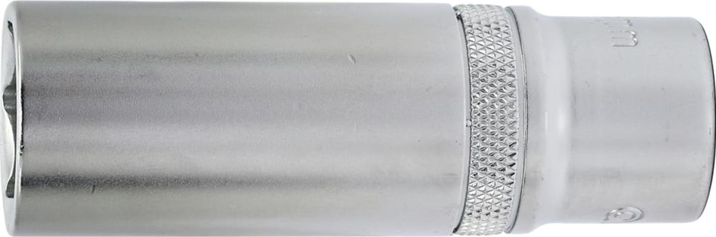 Steckschlüssel-Einsatz 1/2", lang• Seidenmattes Finish • Qualitätsstahl C60 • DIN 3124, ISO 2725-1 • 4-kant-Antrieb DIN 3120-D 12,5; ISO 1174 • Kugelfangrille • Griffig gerändelt • Innen-6-kant