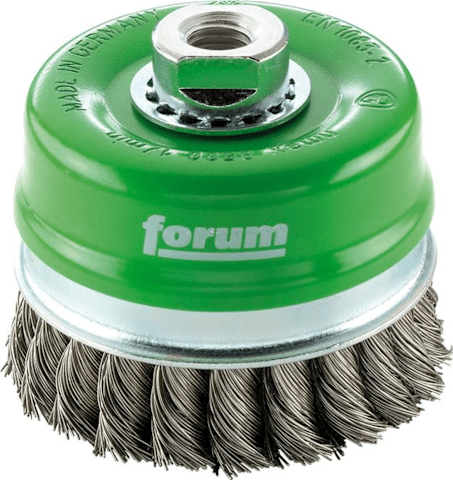 Topfbürste• Rostfreier Stahldraht, gezopft • Stützring verhindert das seitliche Ausweichen vom Besatzmaterial • Zum Entgraten, Entlacken, Entrosten, Entschlacken, Entzundern und Reinigen