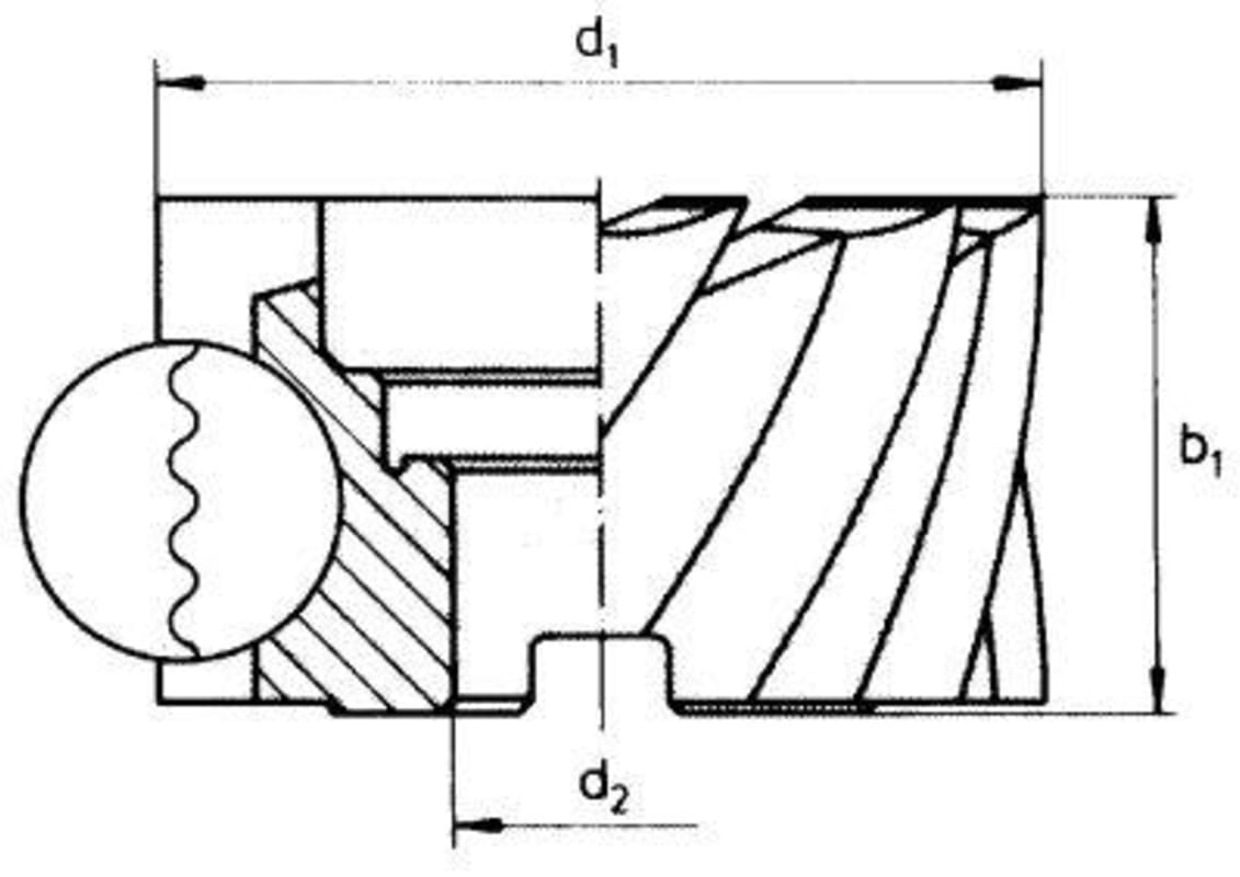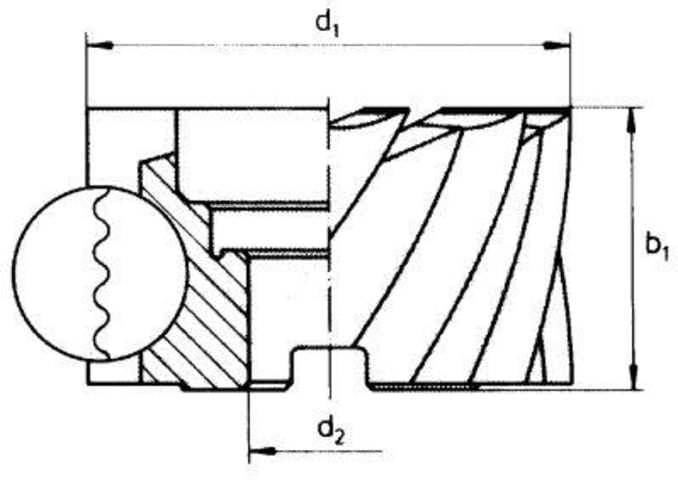 Walzenstirnfräser, TiCN-beschichtet• HSS-Co8 • DIN 1880 • Profilhinterschliffen • Zylindrische Bohrung mit Längs- und Quernut nach DIN 138 • Drallwinkel 25° • Spanwinkel 14° • Geeignet als Pla