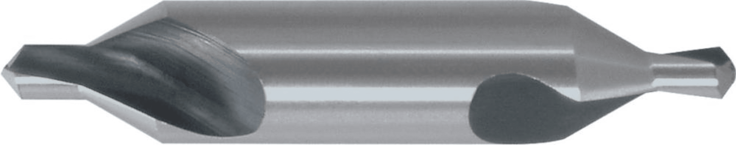 VHM-Zentrierbohrer, blank• VHM K10/K20 • Werksnorm • Spitzenwinkel 60° • Schaft (DIN) zylindrisch • Aus dem vollen Hartmetall-Rundstab geschliffen • >= Ø 2 mm Kegelmantelanschliff