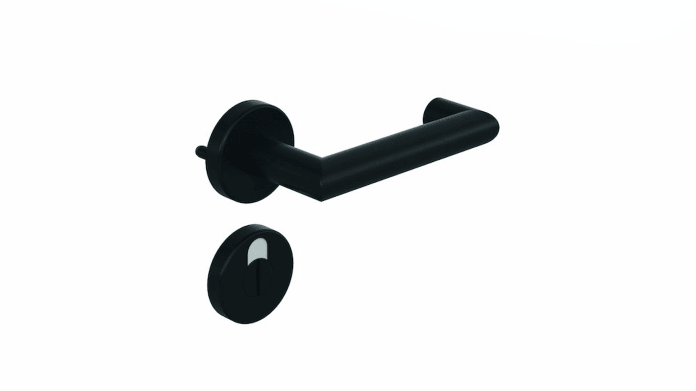HEWI Drückergarnitur 162PBR02.530; Produkttyp: Drückergarnitur; Produkttyp (Hersteller): Drückergarnitur; Ausführung: Rosette; Befestigungsart Drückerrosette (außen): verdeckt verschraubt; Befestigungsart Drückerrosette (innen): verdeckt verschraubt; Befestigungstechnik: mit Stütznocken; Montageart: aufliegend; Form Drückerrosette: rund; Form Schlüsselrosette (außen): rund; Form Schlüsselrosette (innen): rund; Vierkant: 8 mm; Material: Kunststoff; Material Türdrücker: Kunststoff; Material Rosetteneinleger: Kunststoff; Material Unterkonstruktion (Griffrosette): Kunststoff-Stahlverbundbau; Form Türgriff (innen): Gehrung,U-Form; Form Türgriff (außen): U-Form,Gehrung; Durchmesser Türgriff (innen): 21,3 mm; Durchmesser Türgriff (außen): 21,3 mm; Durchmesser Schlüsselrosette: 55 mm; Länge Türgriff (innen): 140 mm; Länge Türgriff (außen): 140 mm; Höhe Türgriff (innen): 62 mm; Höhe Türgriff (außen): 62 mm; Durchmesser Drückerrosette (außen): 55 mm; Durchmesser Drückerrosette (innen): 55 mm; Höhe Drückerrosette (außen): 10 mm; Höhe Drückerrosette (innen): 10 mm; Höhe Schlüsselrosette (außen): 10 mm; Höhe Schlüsselrosette (innen): 10 mm; Lagerung: wartungsfreies Gleitlager,festdrehbar; Einsatzbereich: Objekttür,Zimmertür; Türart: Vollblatt; Türwerkstoff: Holz,Stahl; Lochung: WC Schauscheibe/Schlitzkopf; Riegel-Vierkant: 8 mm; DIN-Richtung: DIN Links-Rechts; Material Rosette: Kunststoff; Farbe: schwarz; Farbton: tiefschwarz; Oberfläche: hochglanz; Oberfläche Türdrücker: matt; Oberfläche Rosette: matt; Oberfläche Rosetteneinleger: matt; Material Unterkonstruktion (Schlüsselrosette): Kunststoff-Stahlverbundbau; Technik: R-Technik; Ausführung Vierkant: Vierkantstift; Türstärke min.: 38,1 mm; Türstärke max.: 43 mm; Norm: DIN 18255,DIN EN 1906