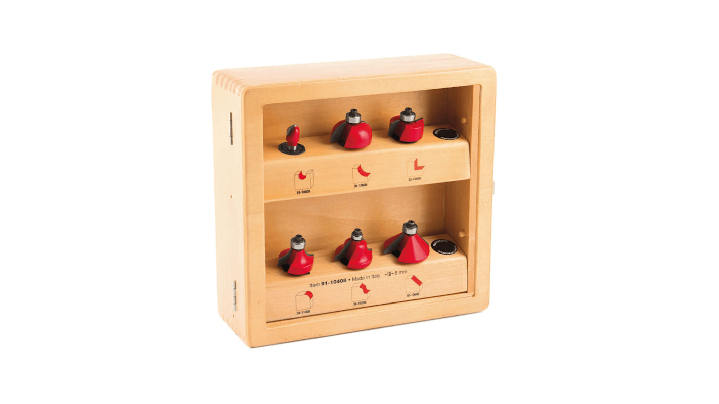 Anwendungen: Dekorative konkave Kanten für traditionelle Möbel. Maschinen: Handoberfräsen und Frästische. Materialien: Weichholz, Hartholz, Sperrholz und holzbasierte Platten. TiCo-Hartmetall Ein von