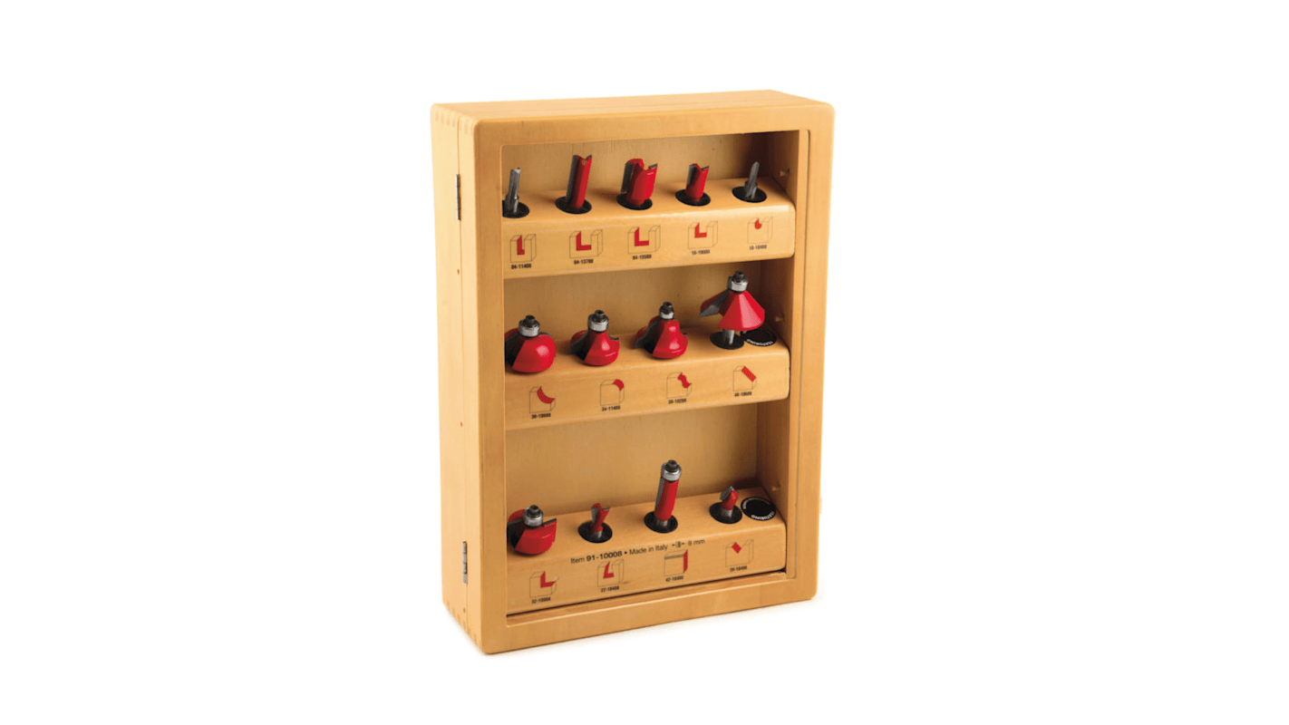 Anwendungen: Dekorative konkave Kanten für traditionelle Möbel. Maschinen: Handoberfräsen und Frästische. Materialien: Weichholz, Hartholz, Sperrholz und holzbasierte Platten. TiCo-Hartmetall Ein von