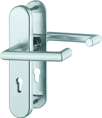 HOPPE® Schutz-Drückergarnitur Rotterdam FS-1401F/3331/3310; Abdeckung: Langschild; Widerstandsklasse: ES 1 (SK2); Form: oval; Vierkant: 9 mm; Material: Aluminium; Lagerung: Gleitlager,wartungsfrei,fes