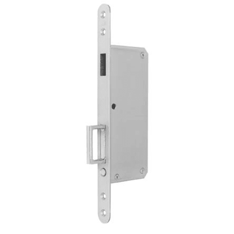 BKS Schiebetürschloss G353; Produkttyp: Schiebetürschloss; Produkttyp (Hersteller): Gegenkasten; Ausführung: mit Zirkelriegel,mit Springgriff; Stulpform: Flachstulp; Material Stulp: Stahl; Schlosskast
