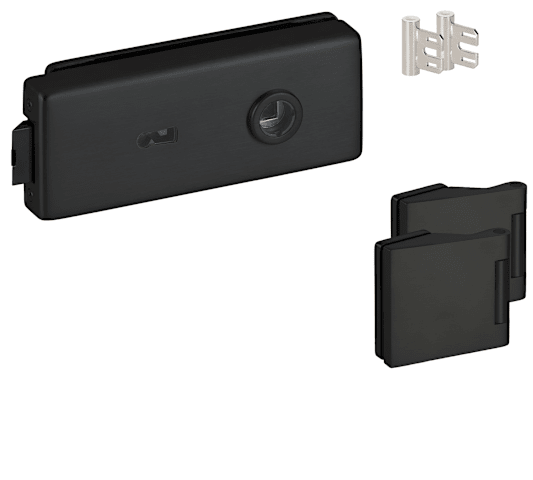 Glastür-Schlosskasten 6082 BB - Genova, Buntbart gelocht (inkl. 1 Schlüssel), inkl. Bandpaar 6325 & Rahment. Stahlzarge, Oberfl. 74 (Classic Black, ähnl. RAL 9005)