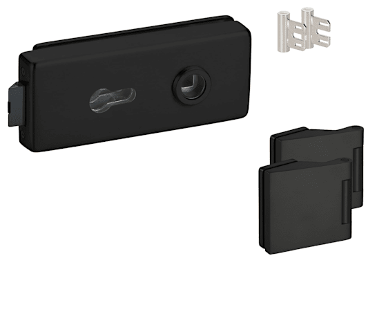Glastür-Schlosskasten 6083 PZ - Genova, PZ gelocht, inkl. Bandpaar 6325 & Rahment. Stahlzarge, Oberfl. 74 (Classic Black, ähnl. RAL 9005)