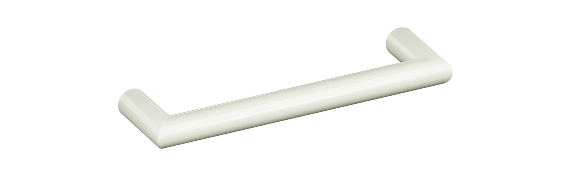 HEWI Bügelgriff 562.13.128; Material: Kunststoff; Befestigung: mit Holzschrauben; Einsatzbereich: Möbel; Farbe: weiß; Farbton: reinweiß; Länge: 141 mm; Höhe: 38 mm; Durchmesser: 13 mm; Oberfläche: hochglanz; Montage: unsichtbar verschraubt; Bohrabstand: 128 mm; Basis: Bügelgriff; Befestigungsart: zur Verschraubung von der Rückseite