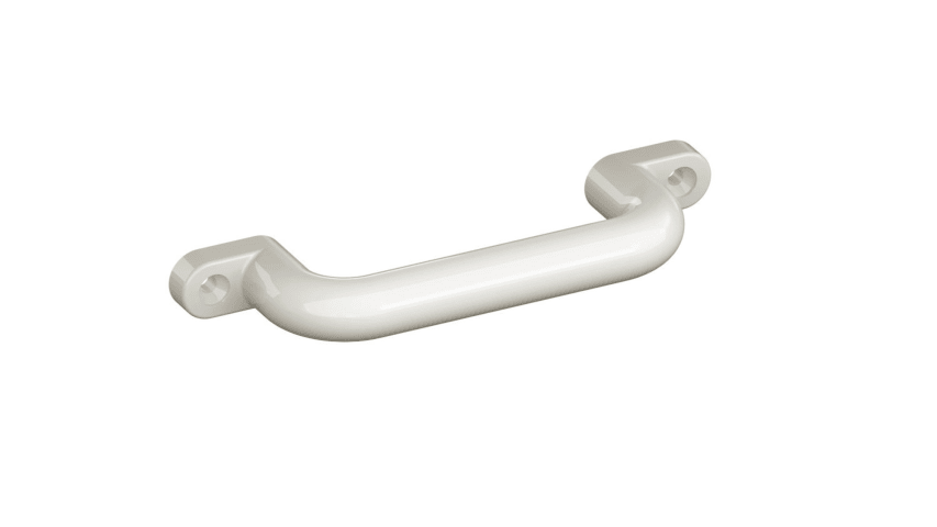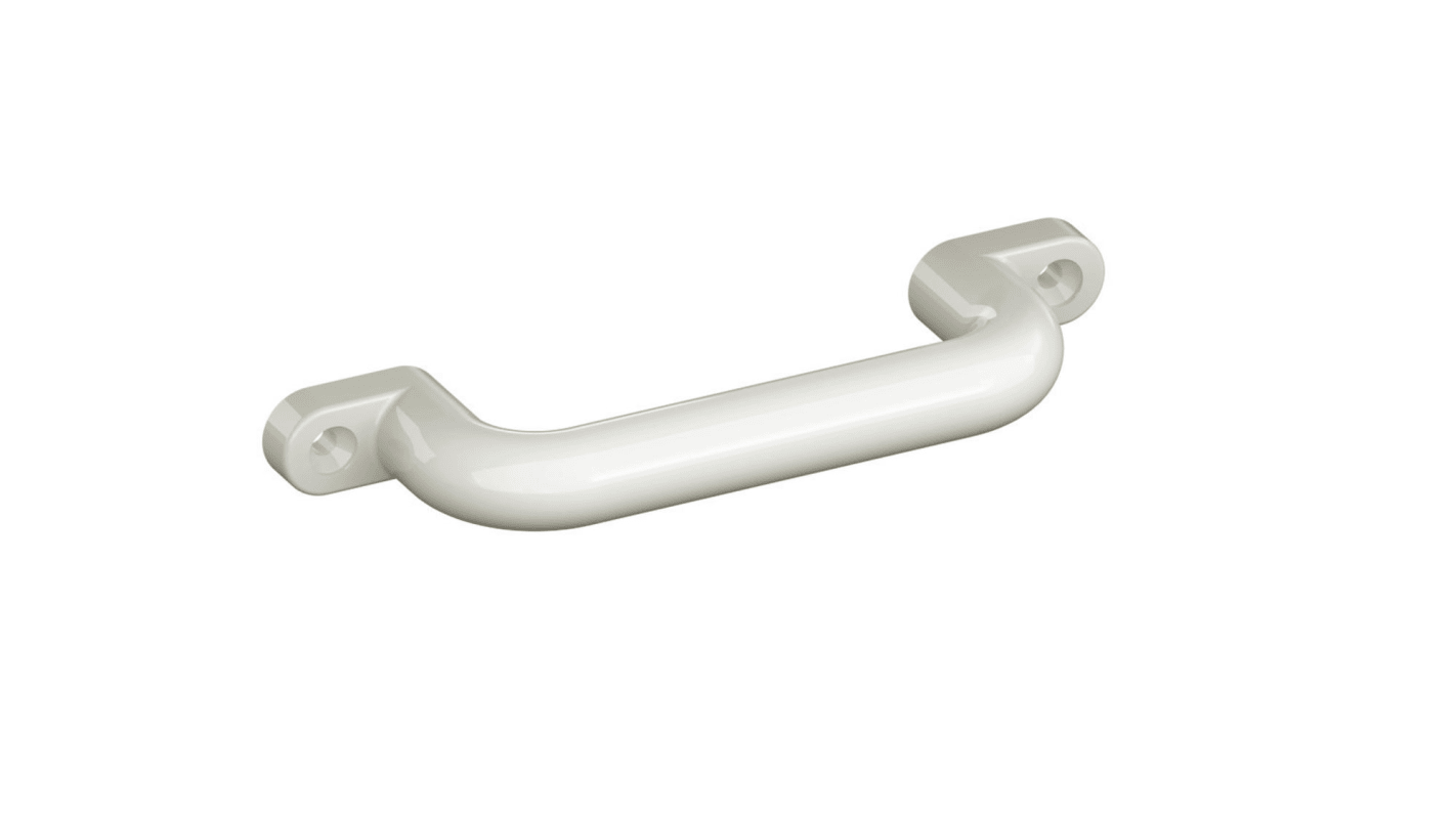 HEWI Bügelgriff 552; Material: Kunststoff; Befestigung: mit Holzschrauben; Einsatzbereich: Möbel; Farbe: grau; Farbton: lichtgrau; Länge: 204 mm; Höhe: 57,5 mm; Durchmesser: 22 mm; Oberfläche: durchge