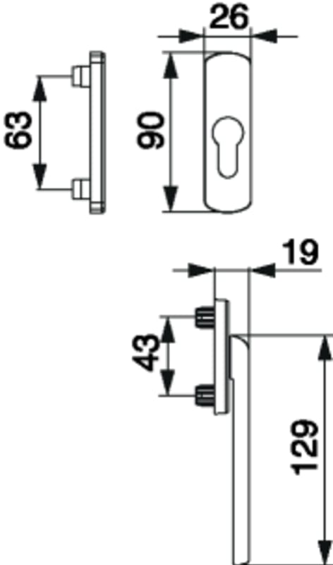 Griff- und Rosettengarnitur Harmony Außengriff flach PZ mit Nocken 12 ohne Stift VK7 graubraun RAL 8019