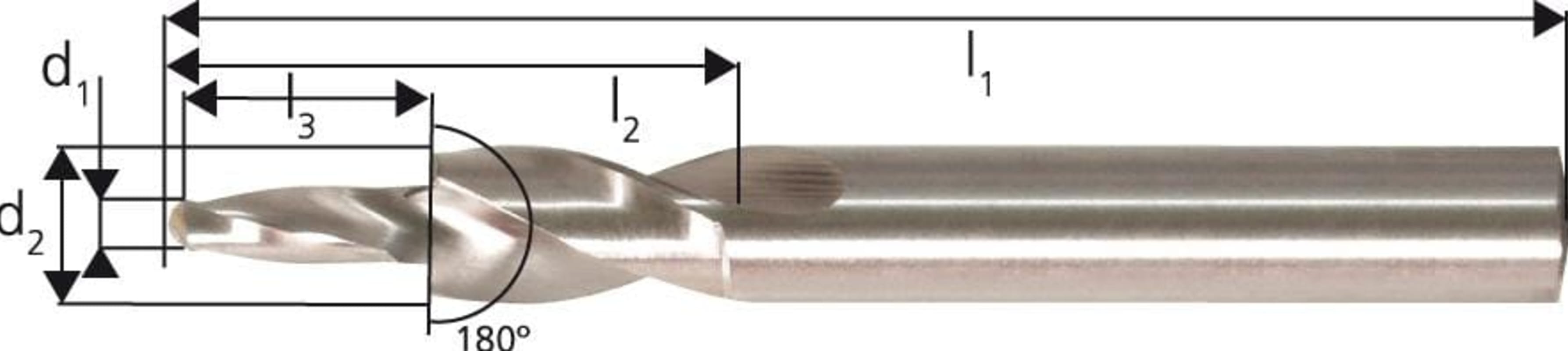 Kurzstufenbohrer 180°• HSS • Werksnorm • Kurze Bauform nach DIN 1897 • Typ N • Spitzenwinkel 118° • Schaft zylindrisch • Profilgeschliffen • Für Durchgangslöcher • Für Schrauben-Durchgangsbohr