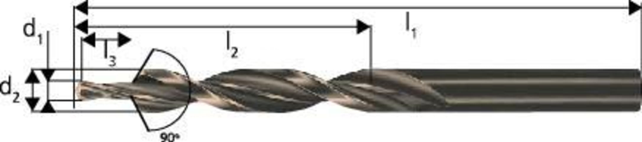 Mehrfasenstufenbohrer 90°, dampfbehandelt• HSS • DIN 8374 • Typ N • Für Durchgangsbohrungen • Spitzenwinkel 118° • Spiralwinkel 25-30° • Schaft zylindrisch • Rechtsschneidend