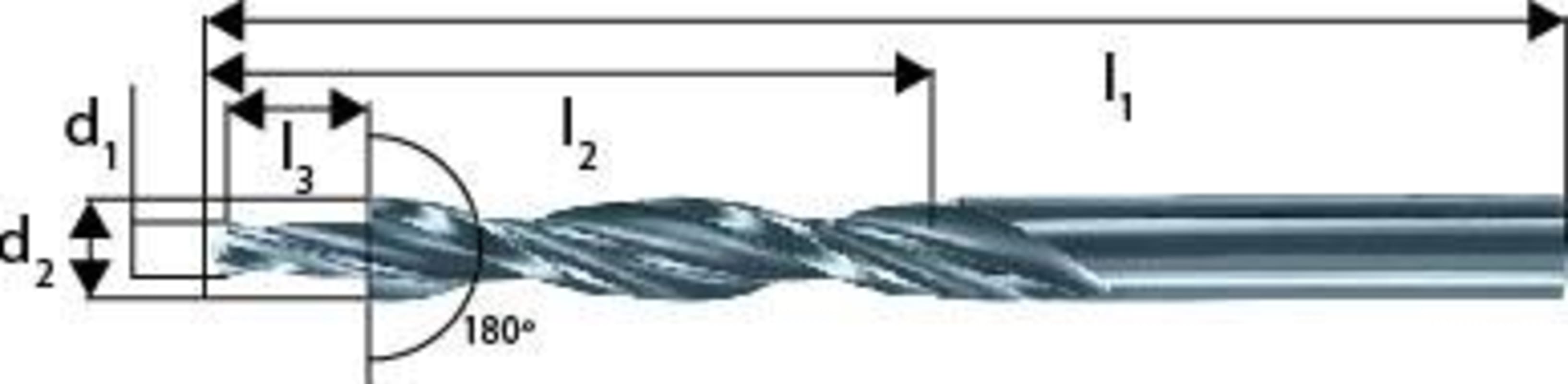 Mehrfasenstufenbohrer 180°, dampfbehandelt• HSS • DIN 8376 • Typ N • Für Durchgangsbohrungen • Spitzenwinkel 118° • Spiralwinkel 25-30° • Schaft zylindrisch • Rechtsschneidend