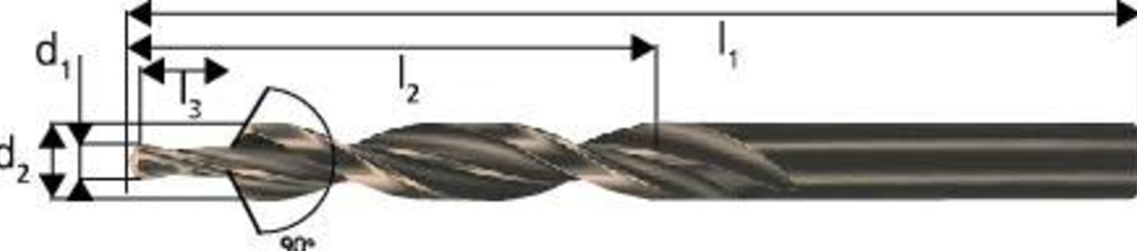 Mehrfasenstufenbohrer 90°, dampfbehandelt• HSS • DIN 8378 • Typ N • Für Kernbohrungen • Spitzenwinkel 118° • Spiralwinkel 25-30° • Schaft zylindrisch • Rechtsschneidend
