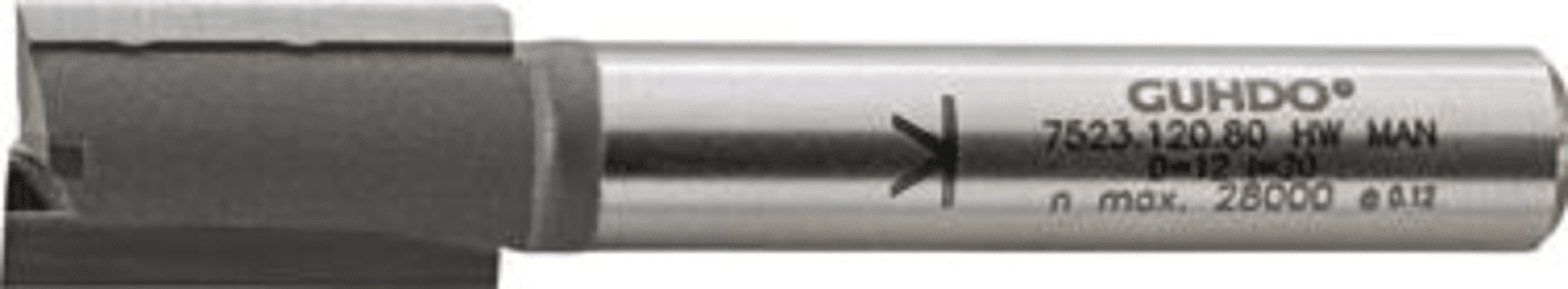 HW-Nutfräser, mit Bohrschneide• Hartmetall-bestückte Schneiden • Rechtslauf • Schaft-Ø 8 mm • Zum Fräsen und Nuten • Für Hartholz, Holz- und beschichtete Plattenwerkstoffe