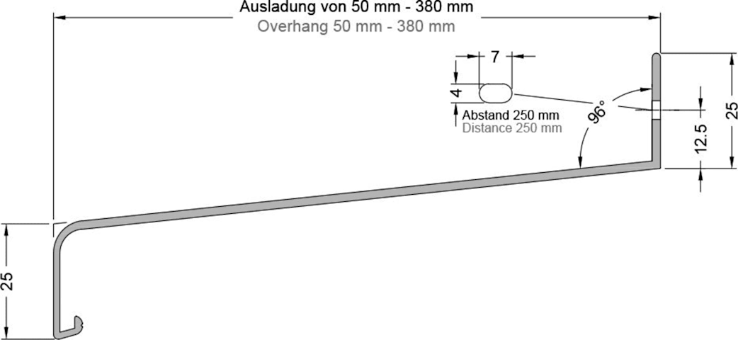 GUTMANN Fensterbank GS 25; Produkttyp: Fensterbank; Produkttyp (Hersteller): Fensterbank; Foliert: Ja; Tropfkante: 25 mm; Material: Aluminium; Legierung: EN AW-6060 T66; Höhe Anschraubsteg: 25 mm; Nor