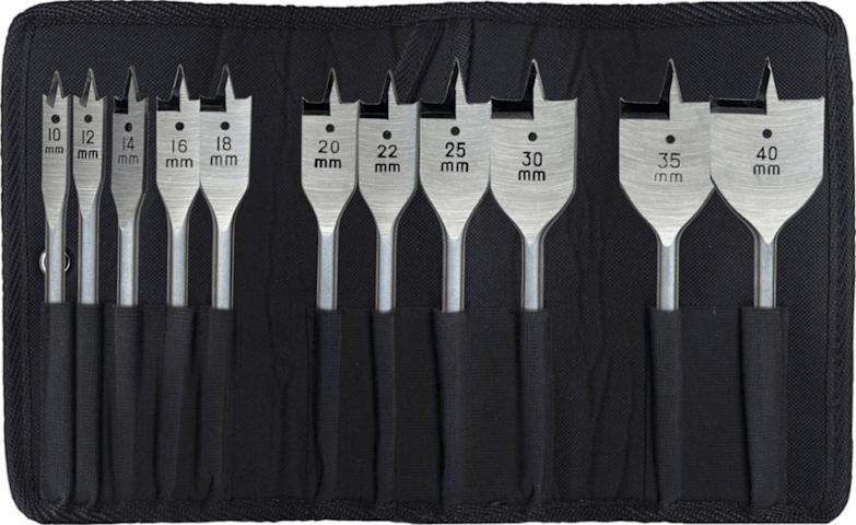 Flachfräsbohrer-Satz QuickBIT®, 11-teilig• Speziell gehärtete Vorschneiden • QuickBIT®-1/4"-6-kant-Schaft • Punktgenaues Anbohren ohne Ausrisse • Für alle Arten von Holz, ideal zum Einsatz auf Akku