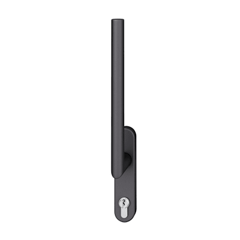 FSB Handhebel 34 1076; Produkttyp: Handhebel; Produkttyp (Hersteller): Handhebel; Ausführung: Standard; Rastung: 180°; Stütznocken: mit Stütznocken; Material: Aluminium; Montageart: aufliegend; Befestigungsart: verdeckt verschraubt; Anwendung: außen; Länge: 253 mm; Höhe: 59 mm; Durchmesser: 21 mm; Befestigungsabstand: 80 mm; Form Rosette: oval; Breite Rosette: 35 mm; Höhe Rosette: 155 mm; Stärke Rosette: 10 mm; Material Unterkonstruktion: Kunststoff; Norm: DIN EN 13126-3; Einsatzbereich: Hebeschiebetür; Fensterwerkstoff: Aluminium,Holz,Kunststoff; Vierkant: 10 mm; DIN-Richtung: DIN Links-Rechts; Lochung: Profilzylinder gelocht; Farbe: schwarz; Oberfläche: gestrahlt,eloxiert