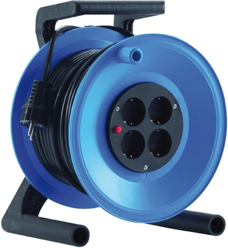 Kunststoff-Kabeltrommel StarLit • Trommelkörper: aus Kunststof • Tragegestell: aus Kunststoff mit ergonomischem Bügelgrif • Steckdosen: 4-fach-Steckdose mit Überlastschutz, VDE-Norm-geprüf • Stecker-Parkstatio • Rotationsstopp-Schalte • Einsatz: in trockenen Räumen, nicht für den Außenbereich geeignet