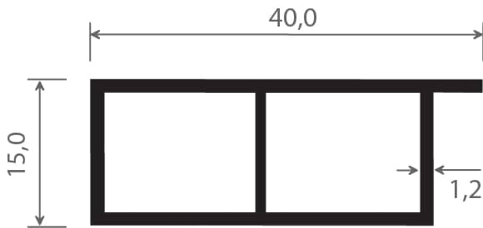 Kammerprofil 40x15 mm Lg. 6,00 m foliert, mit Nase 470 1014 MATTEX DB 703 [159]