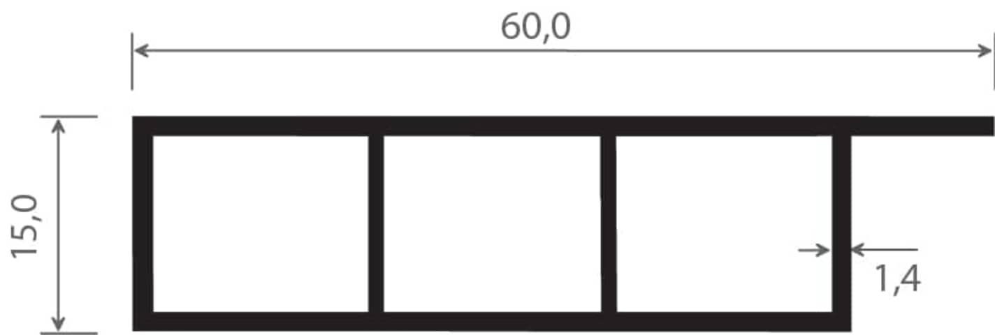 Kammerprofil 60x15 mm Lg. 6,00 m foliert, mit Nase 436 1002 METBRUSH SILBER [95]