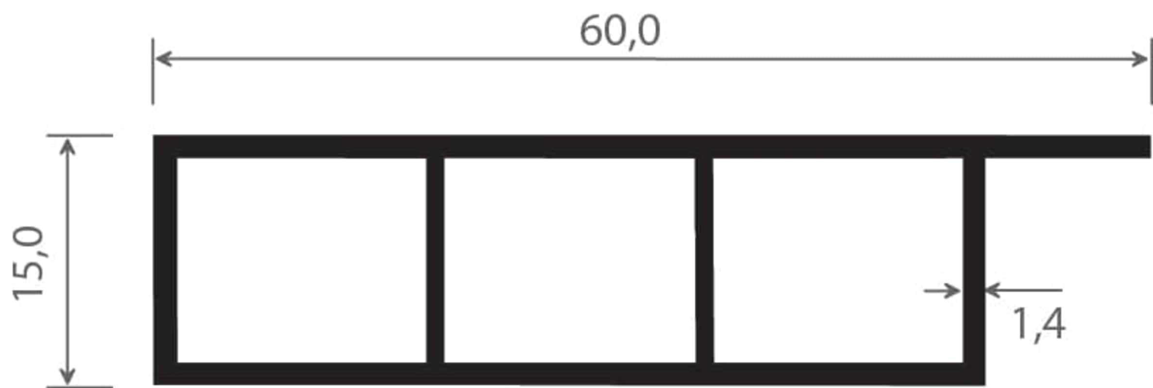 Kammerprofil 60x15 mm Lg. 6,00 m foliert, mit Nase 436 1007 METBRUSH MESSING [191]