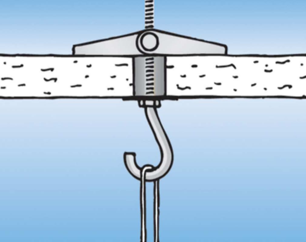 Mit dem fischer Federklappdübel KDH können beispielsweise Leuchten in Gipskarton- und Gipsfaserplatten, Spanplatten und Hohldecken aus Ziegelstein und Beton befestigt werden. Der Federklappdübel wird