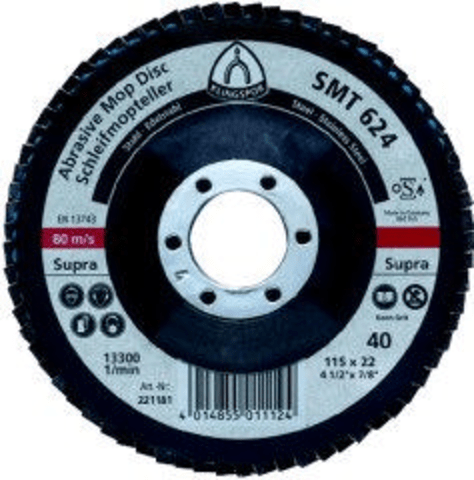 KLINGSPOR SCHLEIFMOPTELLER SMT624 GEW. 115X22,23MM K36 221180 ER STAHL