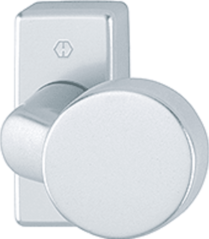 HOPPE® Knopf 58G/44; Material: Aluminium; Befestigungsart: verdeckt verschraubt; Befestigungstechnik: ohne Stütznocken; Abdeckung: auf Rosette; Lagerung: festdrehbar,Rückholfeder; Form Abdeckung: ecki