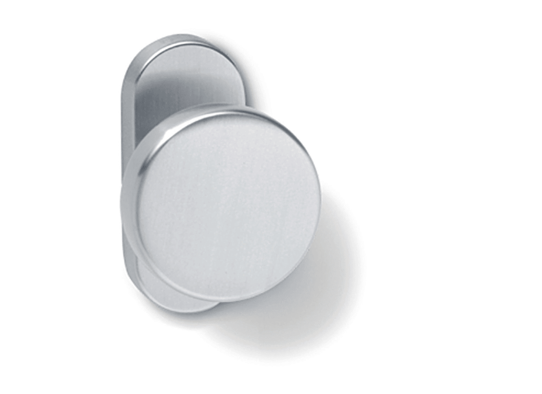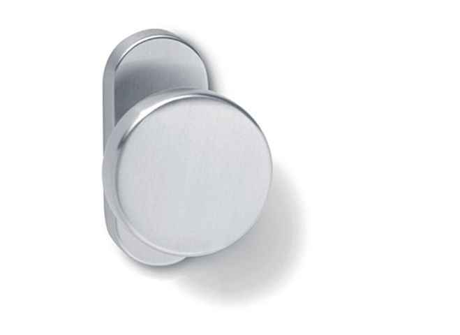 HEWI Knopfpaar 107XAH; Produkttyp: Knopfpaar; Produkttyp (Hersteller): Knopfpaar; Material: Edelstahl; Knopfform: Flachknopf; Höhe: 39 mm; Durchmesser: 50 mm; Durchmesser Ansatz: 21,3 mm; Norm: DIN EN