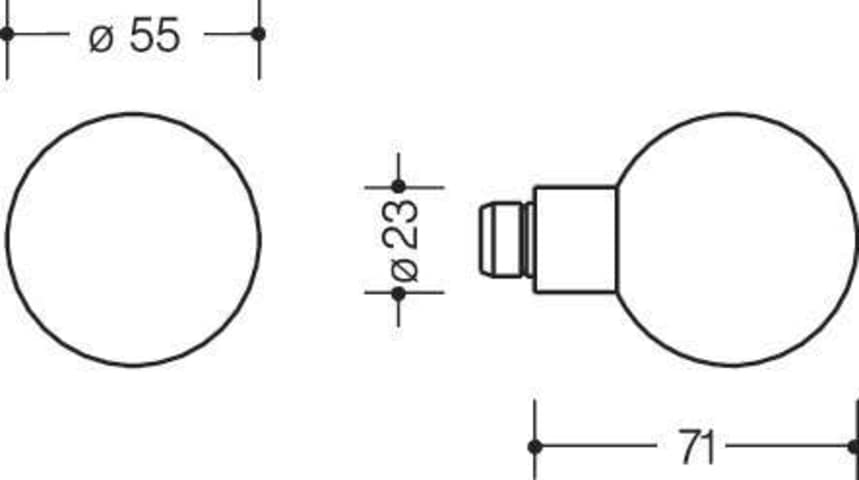 HEWI Knopfpaar 123.23R; Produkttyp: Knopfpaar; Produkttyp (Hersteller): Knopfpaar; Material: Kunststoff; Knopfform: Kugelknopf; Höhe: 71 mm; Durchmesser: 55 mm; Durchmesser Ansatz: 23 mm; Norm: DIN 18