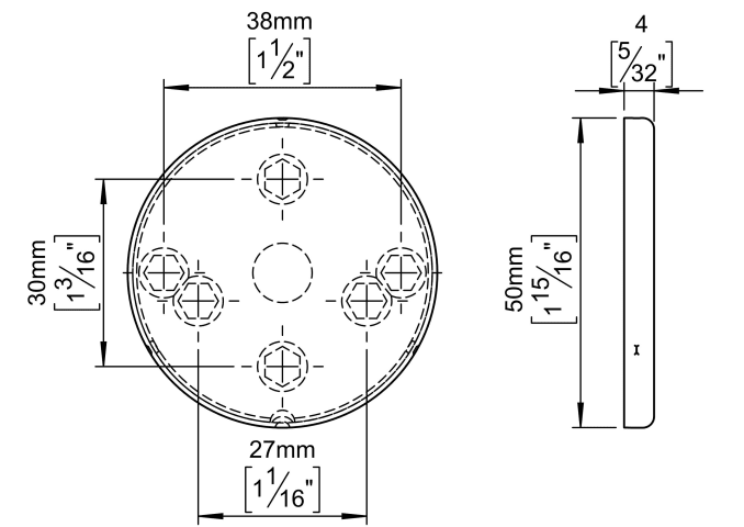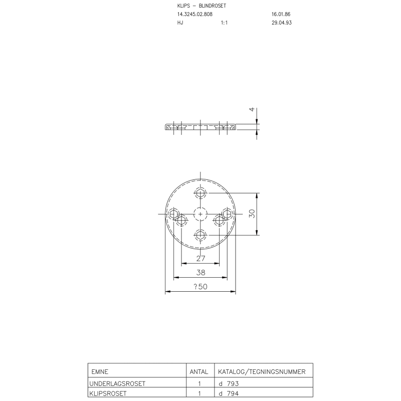 Knud Holscher collection, blind rose, Ø50mm, snap-on cover, cc 27/30/38mm. Manufactured in the highest quality marine grade, AISI 316 stainless steel, protecting against high levels of corrosion. 20-y