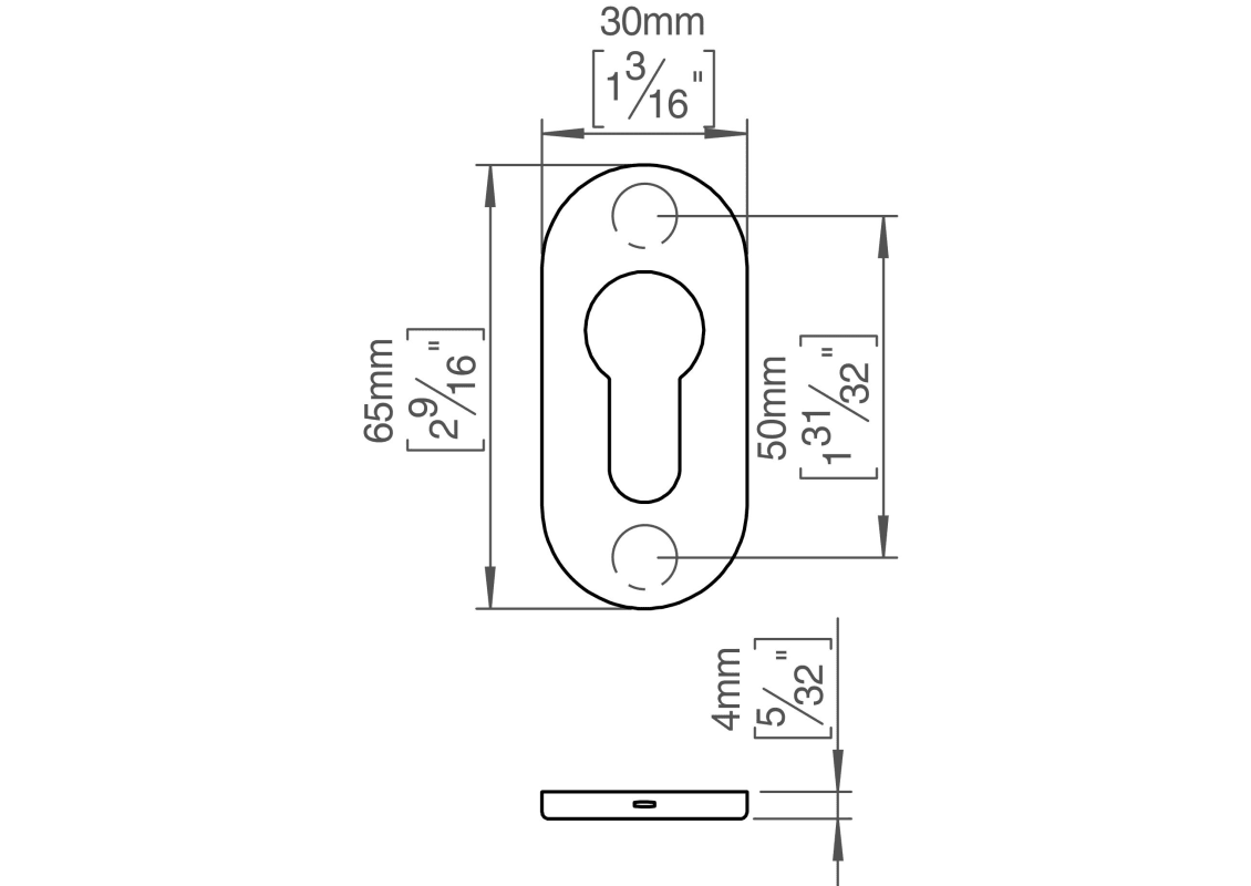 Knud Holscher collection, cyl. escutcheon, Oval w/PZ hole, snap-on cover, cc 50mm. Manufactured in the highest quality marine grade, AISI 316 stainless steel, protecting against high levels of corrosi