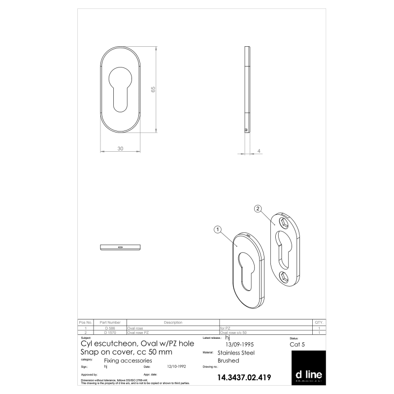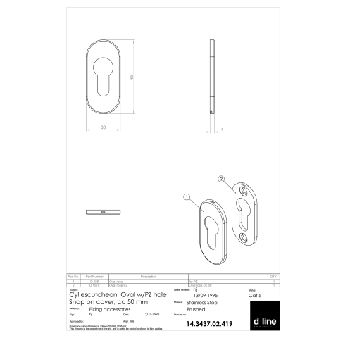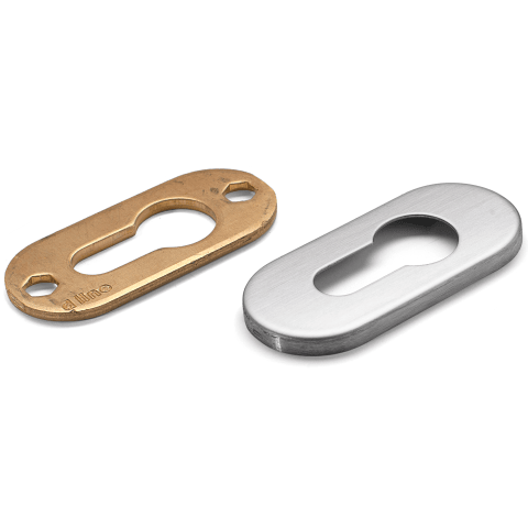 Knud Holscher collection, cyl. escutcheon, Oval w/PZ hole, snap-on cover, cc 50mm. Manufactured in the highest quality marine grade, AISI 316 stainless steel, protecting against high levels of corrosi