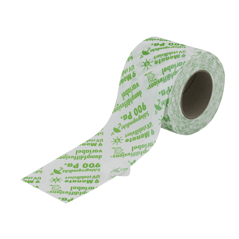 Fensterdichtband KONVARI mit variablem SD-Wert, für innen und außen. Variante A = einseitig Blendrahmenkleber.