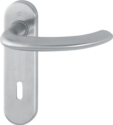 HOPPE® Drückergarnitur Marseille E1138Z/353K; Abdeckung: Kurzschild; Form: oval; Vierkant: 8 mm; Material: Edelstahl; Befestigungstechnik: mit Stütznocken; Befestigungsart: verdeckt verschraubt; Basis: Drückergarnitur; Lochung: Buntbart gelocht; Entfernung: 72 mm; Farbton: edelstahl matt; DIN-Richtung: DIN Links-Rechts; Lagerung: Gleitlager,wartungsfrei,lose; Material Unterkonstruktion: Stahl; Befestigungssystem: Schnellstiftverbindung; Drückerbefestigung: Vollstift; Drückerform: gebogen; Anschlagrichtung: Drücker rechts/links verwendbar; Türstärke min.: 35 mm; Türstärke max.: 45 mm; Länge: 165 mm; Breite: 44 mm; Schildstärke: 8 mm; Drückerhöhe: 69 mm; Drückerlänge: 144 mm; Norm: DIN EN 1906; Einsatzbereich: Objekttür; Türart: Innentüren; Türwerkstoff: Holz,Stahl