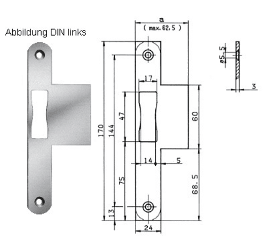 BKS Lappenschließblech B 9000; Produkttyp: Lappenschließblech; Produkttyp (Hersteller): Lappenschließblech; Ausfräsung: mit Fallenausschnitt; Material: Edelstahl; Einsatzbereich: Türrahmen; Form: rund