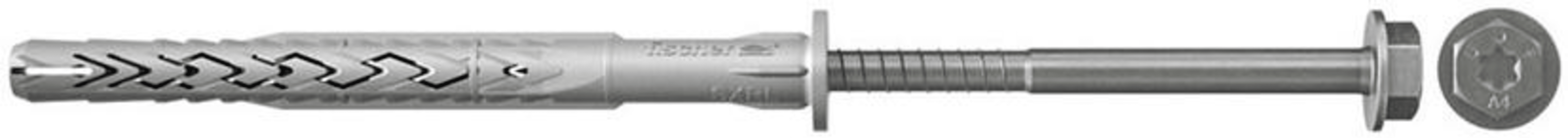 Der fischer Langschaftdübel SXRL-FUS R ist mit der fischer Sechskantschraube mit angeformter Scheibe und integrierter Bit-Aufnahme für Mehrfachbefestigungen von nicht tragenden Systemen in Mauerwerk, Beton und Porenbeton zugelassen. In Lochsteinmauerwerk leiten die zwei Spreizzonen des Dübels gleichmäßig Kraft ein, in Porenbeton und Vollbaustoff vereinen sich diese zu einem langen Spreizelement. Mit der Sicherheitsschraube aus nicht rostendem Stahl ist der Langschaftdübel für Befestigungen von Metallkonstruktionen im Außenbereich geeignet.
