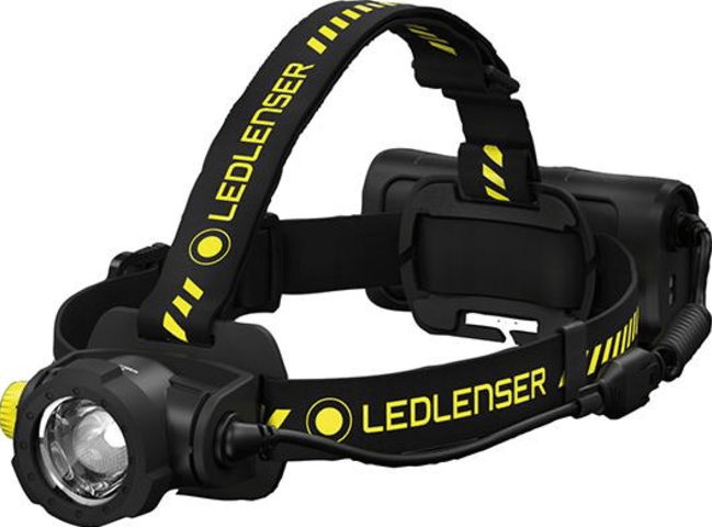 Akku-LED-Stirnlampe H15R Work• Fest verbaute Hochleistungs-LED • Leuchtstärke stufenlos (100–2 %) einstellbar und Boostfunktion • Lichtstrahl fokussierbar • Aluminiumgehäuse • 120° neigbarer Lampe
